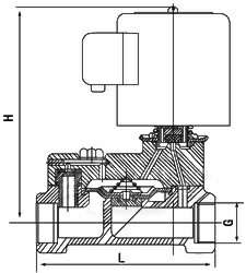 本阀通径15~100为膜片式为二次开阀的先导式电磁阀,通径125~300为三次开阀的先导式电磁阀,其结构主要由副阀和主阀组成。根据断电时所处开关状态的不同,可分为常闭电磁阀和常开电磁阀。常闭电磁阀,常位时,活动铁芯封住副阀口,阀腔内压力平衡,副阀、主阀口封闭。当线圈通电,产生电磁力:将活动铁芯吸上,副阀打开,主阀腔内的介质自导阀门外世,以致主阀阀杯上下产生压力差,膜片或阀杯被迅速托起主阀口开启,阀呈通路状态。
