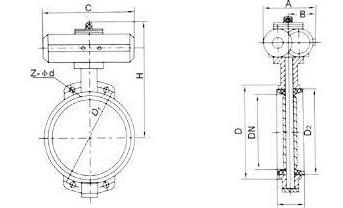D671X气动对夹式蝶阀采用新型系列GT型气动执行器,有双作用式和单作用式(弹簧复位),齿轮传动,安全可靠;大口径阀门采用系列AW型气动执行器拔叉式传动,结构合理,输出扭矩大。