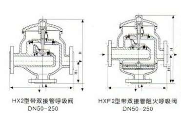 HXF2带双接管呼吸阀根据国家标准《石油化工企业设计防火规范》(GB50160-92)之规定:甲、乙类液体的固定顶罐,应设阻火器和呼吸阀。可见呼吸阀、阻火器是储罐不可缺少的安全设施。它不仅能维持储罐气压平衡,确保储罐在超压或真空时免遭破坏,且能减少罐内介质的挥发和损耗。上海易倍emc官网网页版_易倍·(中国)厂生产的呼吸阀,具有结构紧凑、通气量大、泄漏量小、密封性能好等特点。